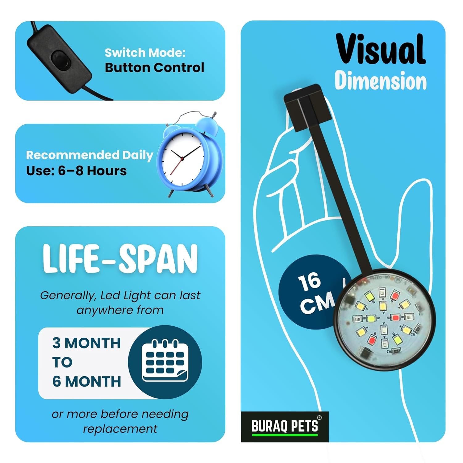 - AQUARIUM CLIP LIGHT – How to Enjoy your Beautiful Fish at Night? Aquarium Clip Light helps you implement it easily. Both white and blue lights not only make your aquarium more beautiful at night but also improve your fish tank’s ecological environment. let your fish live in a beautiful and healthy environment.