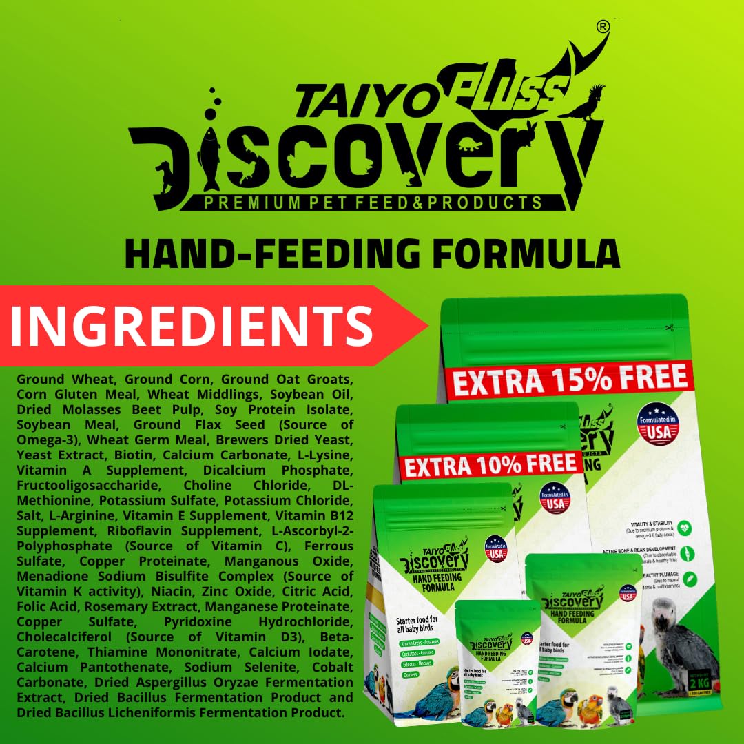Taiyo Pluss Discovery® Hand Feeding Formula Bird Food | Suitable for African Grey Parrot, Cockatoo, Sun Conure and Macaw Chicks